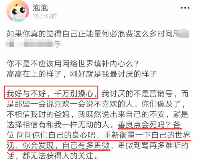 Ngoài ra thì Trịnh Sảng còn nói: “Tôi tốt hay không tốt ngàn vạn lần đừng để tâm. Thứ tối ghét không phải là Doanh tiêu hào (tài khoản kinh doanh trên mạng) mà là những người lúc thì nói thích lúc thì nói không thích! Lương thiện sẽ chết sao? Các vị có từng hỏi thử lương tâm của mình chưa?”, “Các bạn hãy xem lại thế giới quan của mình lần nữa, bạn sẽ phát hiện bản thân có bao nhiêu ti tiện. Ti tiện đến nỗi mắng người với nhiều lời nói khó nghe cũng không có cách nào nhận được sự chú ý của người khác“.