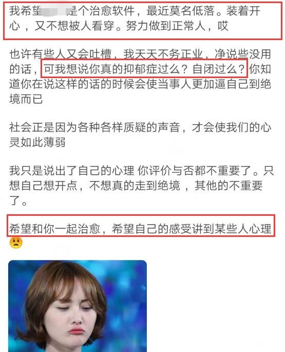 Trịnh Sảng gần đây có đăng một bài viết trên một phần mềm xã hội cho biết: “Trạng thái gần đây luôn xuống thấp, luôn phải giả vờ vui vẻ nhưng lại không muốn người khác nhìn thấu, nỗ lực làm một người bình thường”. Đối với những bình luận có tính ác ý trong bài viết của mình, Trịnh Sảng tức giận trả lời: “Ngươi thực sự bệnh trầm cảm qua chưa. Tự nhốt mình chưa?” Nghi ngờ nữ diễn viên đang tiết lộ bản thân mắc bệnh trầm cảm.