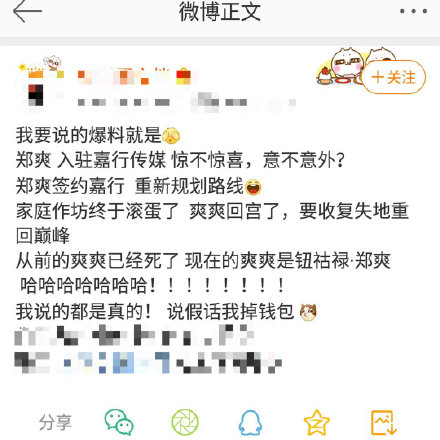 Mới đây, trên mạng xuất hiện tin nữ diễn viên Trịnh Sảng sẽ ký kết đầu quân vào truyền thông Gia Hành thu hút sự quan tâm của đông đảo cư dân mạng. Phải biết rằng, nếu như chuyện này là thật thì công ty truyền thông Gia Hành đã tập hợp được ba nữ diễn viên lưu lượng được xem là đỉnh nhất hiện nay gồm Dương Mịch, Địch Lệ Nhiệt Ba và Trịnh Sảng.