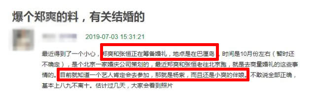 Được biết, tình cảm giữa Trịnh Sảng và Trương Hằng bấy lâu nay luôn rất ổn định, đôi tình nhân này cũng thường hay thể hiện ân ái cho nhau và phát cẩu lương cho nhiều người xem. Nhưng việc Trịnh Sảng chọn Dương Tử làm phù dâu là điều làm nhiều người cảm thấy bất ngờ.