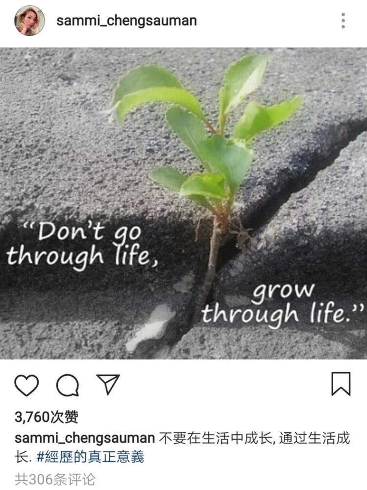 Ngoại trừ hình tự sướng thì Trịnh Tú Văn còn đăng lên một tấm hình khác về một hạt đậu nhỏ nứt lên giữa phiến đá, kiên cường mà sinh trưởng, đồng thời bức hình đó cô viết: “Không cần phải trưởng thành trong cuộc sống mà phải thông qua cuộc sống để trưởng thành“.