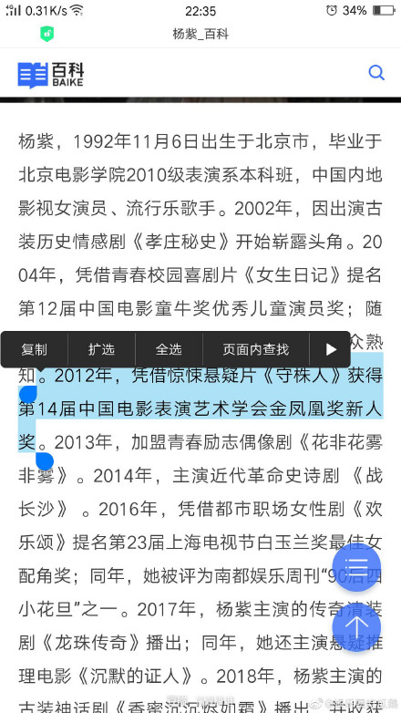 Dòng chữ màu xanh là tư liệu chứng tỏ Dương Tử nhận được giải Diễn viên mới xuất sắc nhất nhờ vào phim Thủ mộc nhân của giải Kim Phượng Hoàng - Học hội nghệ thuật biểu diễn điện ảnh Trung Quốc lần thứ 14.