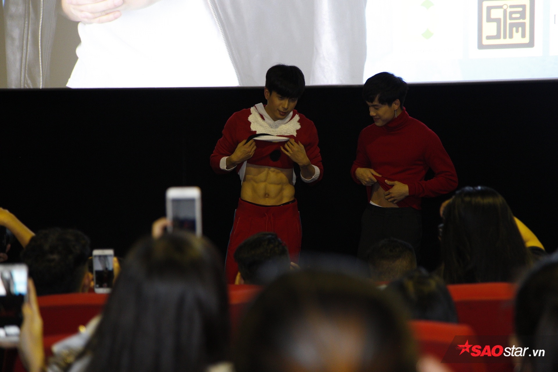 Buổi fanmeeting kéo dài trong hơn 2 giờ đồng hồ với hàng loạt những nội dung hấp dẫn dành cho người hâm mộ. Nếu như lúc mở đầu, không khí đã nóng 100 độ với màn khoe thân hình 6 múi của Nonkul và James, thì ngay sau đó, những trò chơi vận động và các món quà đặc biệt đã khiến hội trường nóng 1000 độ.