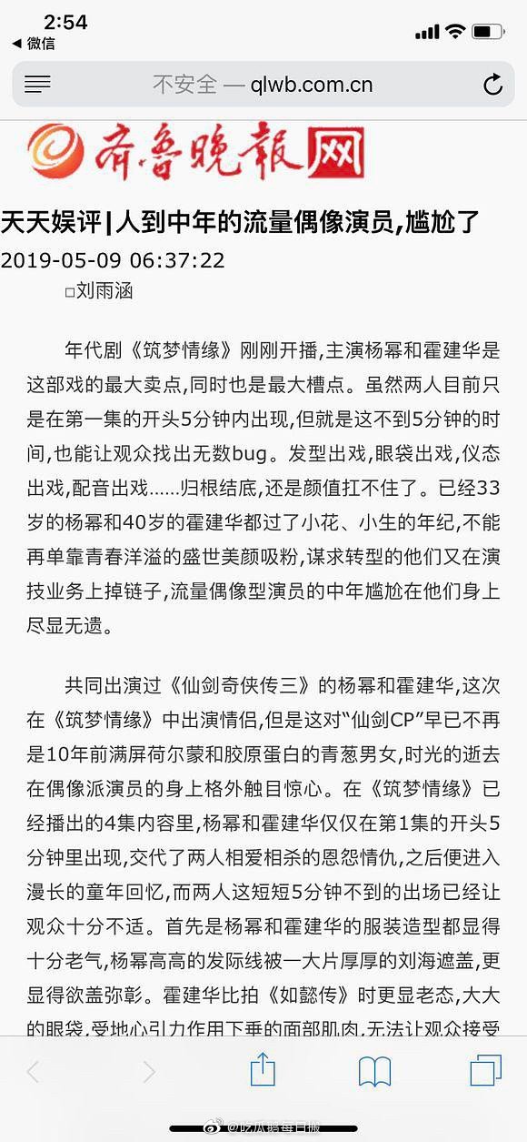 Mới đây, nam chính Hoắc Kiến Hoa và nữ chính Dương Mịch trong Trúc mộng tình duyên đã bị trang báo Qilu Evening News lên tiếng chê bai. Dưới đây là một số nội dung chính mà trang báo này đưa tin: