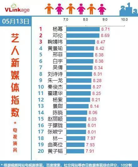 Trong bảng xếp hạng mới nhất về chỉ số truyền thông của diễn viên phim truyền hình, Dương Mịch vượt qua Đặng Luân và chiếm vị trí số 1. Trong bảng xếp hạng top 20 diễn viên, có đến 4 vị trí thuộc về diễn viên phim Trúc mộng tình duyên: Dương Mịch, Hoắc Kiến Hoa, Trương Tuấn Ninh, Khúc Cao Vị. Đây cũng là một thành tích rất tốt dành cho bộ phim này.