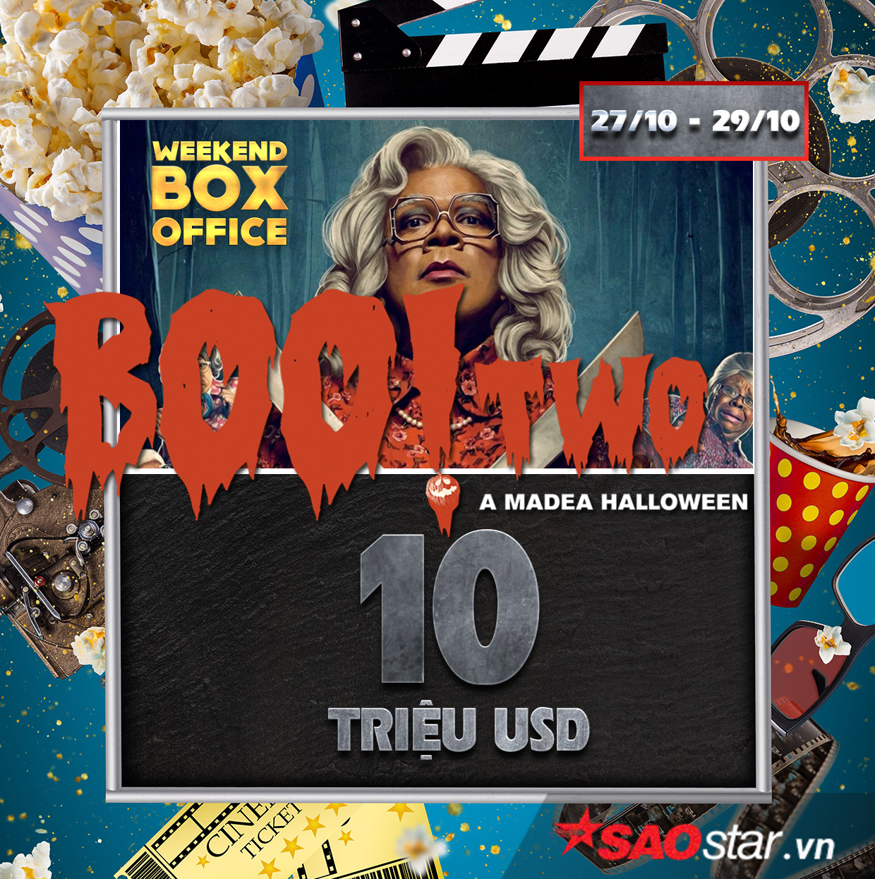 Có thể nói, hãng Lionsgate đang thống lĩnh Box Office của Mỹ với 2 phim kinh dị, khi mà vị trí thứ 2 thuộc về Tyler Perry's Boo 2! A Madea Halloween với 10 triệu USD cho 3 ngày cuối tuần vừa qua. Sau 10 ngày, bộ phim kinh dị hài này đã thu về 35 triệu USD.
