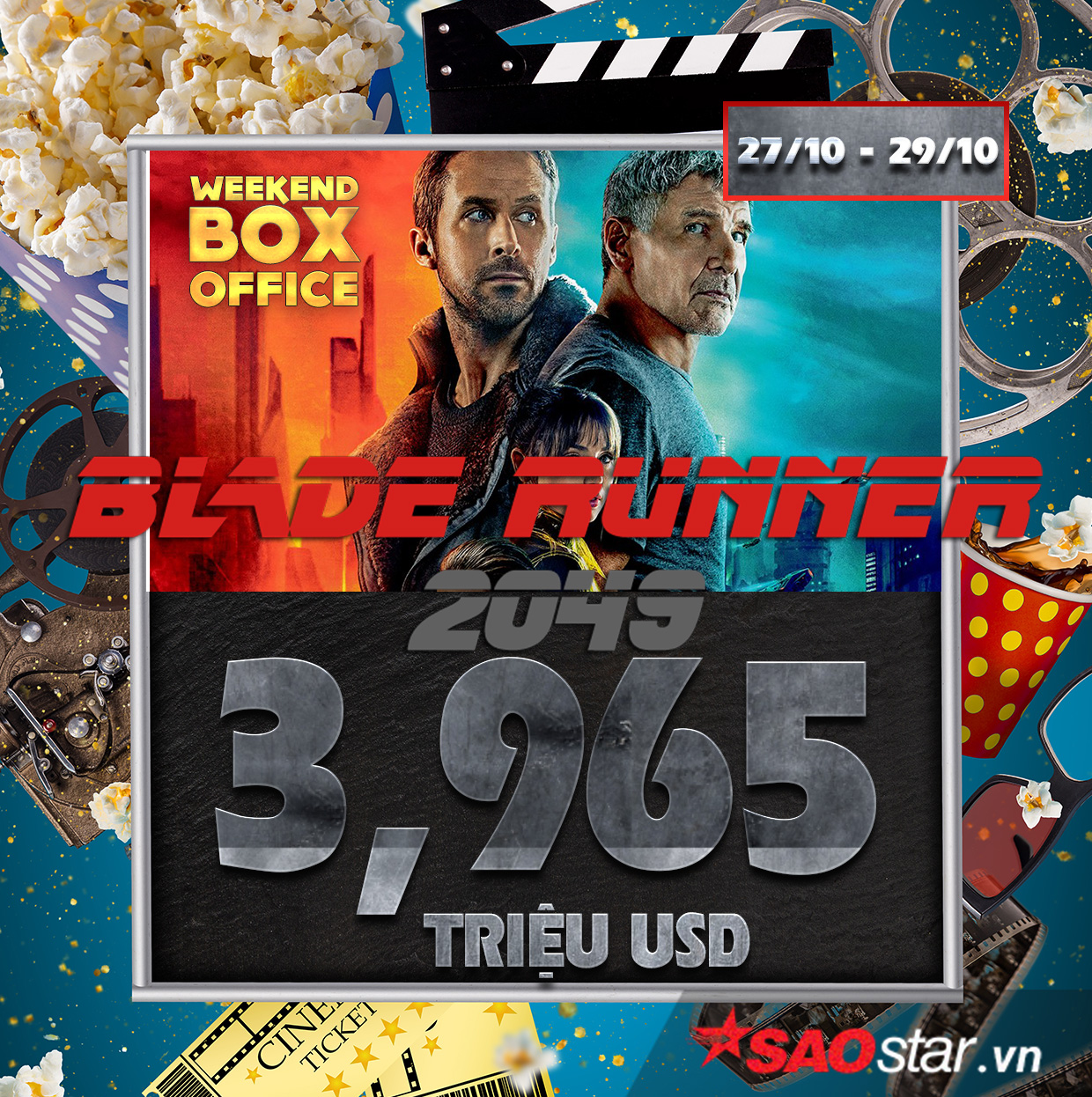 Vị trí cuối cùng trong top 5 là của Blade Runner 2049 với 3,9 triệu USD. Bộ phim đã ra mắt tại Trung Quốc vào cuối tuần nhưng thua kém xa Geostorm khi chỉ mang về 7,6 triệu USD. Tại Nhật, Blade Runner 2049 cũng khởi chiếu vào tuần vừa qua và mang lại 2,7 triệu USD, dẫn đầu tại thị trường này. Hiện tại, doanh thu quốc tế của phim đã ở khoảng 142 triệu USD.