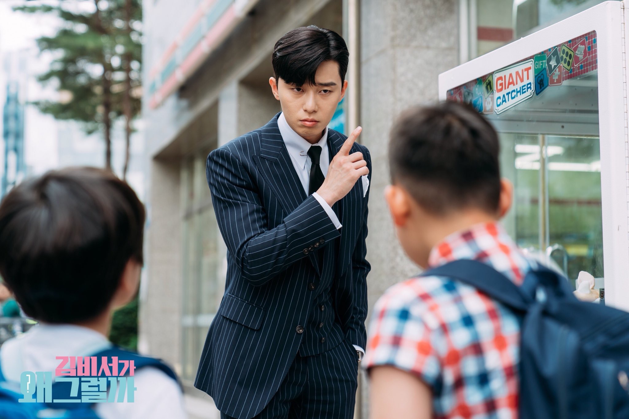 Và cố gắng tranh với hai cậu nhóc tiểu học, cầu nguyện nhiệt tình để có thể gắp được thú nhồi bông. Chắc anh ấy muốn tặng cho thư ký Kim đấy!