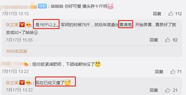 Vì giảm cân quá nhiều nên cô đã bị loét dạ dày. Sau đó vì dưỡng lại dạ dày nhỏ bé, Trương Chỉ Khê đã tích cực nuôi bệnh và nặng đến 46 kg. Đối với mọi người, 46 kg vẫn là bình thường nhưng nó lại khá ảnh hưởng đến hiệu quả khi lên hình. Có rất nhiều minh tinh có cân nặng thực sự làm người khác ngưỡng mộ nhưng chỉ là xinh đẹp của xương mà thôi, có chút không tốt cho sức khỏe.
