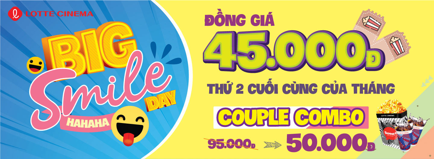 Đặc biệt nhất là ưu đãi đồng giá 45,000 VNĐ cho mọi khán giả xem phim 2D trong ngày Big Smile Day - Thứ 2 cuối tháng. Cụ thể là ngày 29.01.2018 và ngày 26.02.2018 (ngày 11 Tết Nguyên Đán).