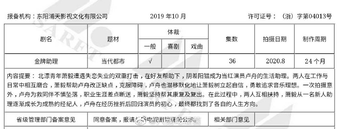 Mới đây, trên mạng xuất hiện tin tiểu thuyết Kim bài trợ lý sẽ được chuyển thể thành phim và nam chính giao cho Lâm Ngạn Tuấn và Trương Hàn đảm nhận.