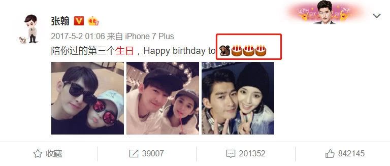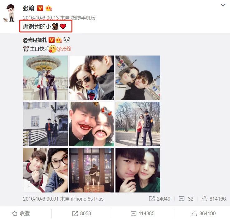 Khi Trương Hàn và Cổ Lực Na Trát còn yêu nhau, nam diễn viên đã dùng ký tự, biệt danh chú khỉ con để đặt cho người yêu của mình. Lần đầu tiên, cặp đôi công bố chuyện tình cảm, Trương Hàn cũng dùng icon như thế này để tỏ tình với Cổ Lực Nat Trát. Vào ngày hôm nay, Trương Hàn đăng một tấm ảnh tự sướng trên Weibo, sẽ chẳng có gì ngạc nhiên hay nghi ngờ nếu trên dòng trạng thái của nam diễn viên có icon chú khỉ. Điều này đã gây ra cuộc thảo luận sôi nổi trên cộng đồng mạng.