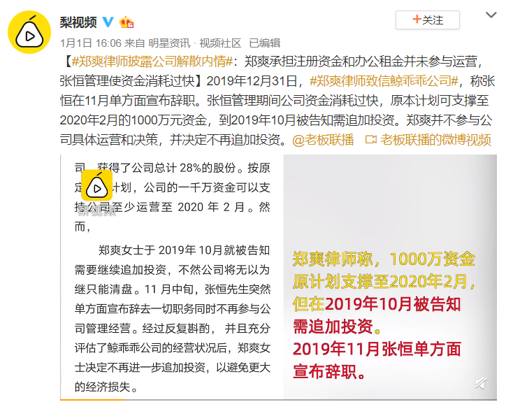 Cũng cùng lúc đó, truyền thông đăng tải: “Trong thời gian Trương Hằng quản lý công ty do Trịnh Sảng đầu tư, số tiền tiêu hao rất nhanh. Vốn kế hoạch 10 triệu NDT (34 tỷ đồng) dùng đến tháng 2 năm 2020 nhưng đến tháng 10 năm 2019 thì đối phương đã sử dụng hết. Thế nên, Trịnh Sảng kiện Trương Hằng là hoàn toàn hợp tình hợp lý, rất đông cư dân mạng cũng lên tiếng ủng hộ nữ diễn viên”.