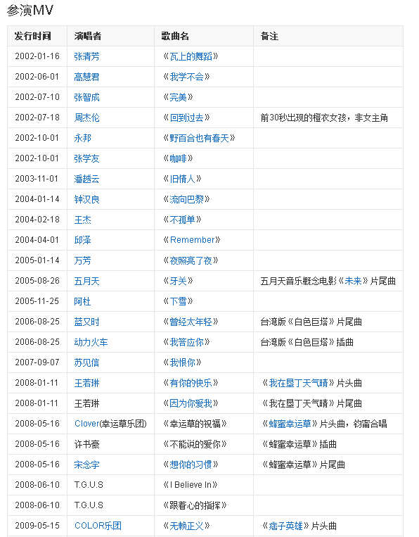 Ngoài việc đóng phim, Trương Quân Ninh còn tham gia đóng nữ chính MV cho hơn 50 ca sĩ nổi tiếng khác như Trương Học Hữu, Châu Kiệt Luân, Ngũ Nguyệt Thiên, La Chí Tường, Ngụy Thần, A Đỗ, Động Lực Hỏa Xa,…