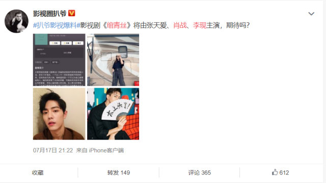 Mới đây, trên mạng xuất hiện Oản thanh ti được chuyển thể thành phim truyền hình, dàn diễn viên đã định gồm Trương Thiên Ái, Tiêu Chiến và Lý Hiện (Phim song nam chủ). Điều làm khán giả chú ý nhất chính là sự hợp tác của hai nam chính trong phim là Tiêu Chiến và Lý Hiện.