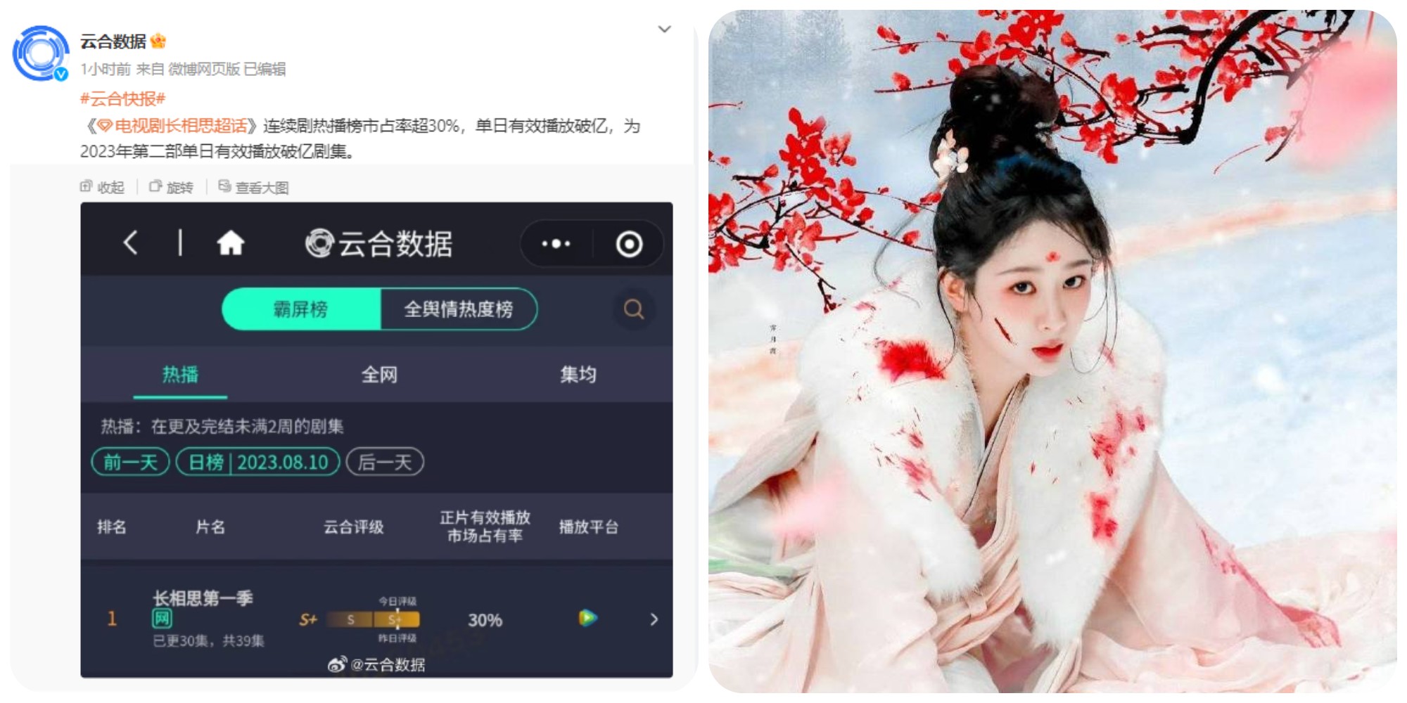 Vân Hợp của Trường Tương Tư phá 100 triệu view/ngày ở tập được cho là cao trào nhất phim. Theo đó, nữ chính Tiểu Yêu (Dương Tử) đã phải đổ máu giữa rừng tuyết trắng, Đồ Sơn Cảnh (Đặng Vi) vì nàng mà truyền linh lực chấp nhận bị thiêu đốt toàn thân. Cảnh quay này đã lấy đi rất nhiều nước mắt của khán giả màn ảnh nhỏ.