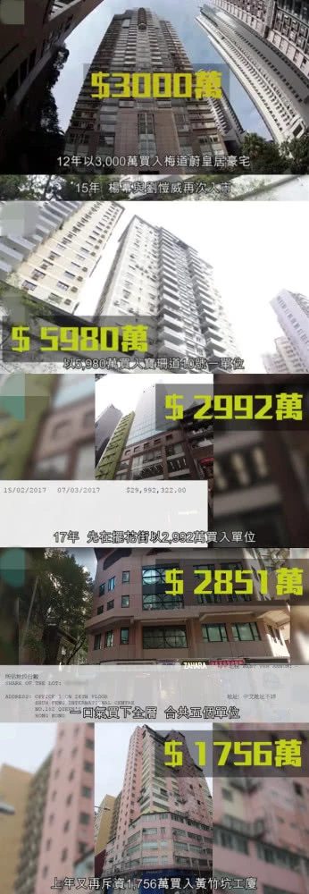 Tại Hong Kong, mỗi tấc đất là một tấc vàng, với nhiều bất động sản đứng tên chung cả hai rất khó để phân chia. Từ năm 2012, họ đã không ngừng mua đất, mua nhà, mỗi lần đều chi hơn 10 triệu NDT (hơn 35 tỷ đồng), thậm chí có lúc họ mua liền 5 khu bất động sản chỉ trong 1 lần chi tiền.