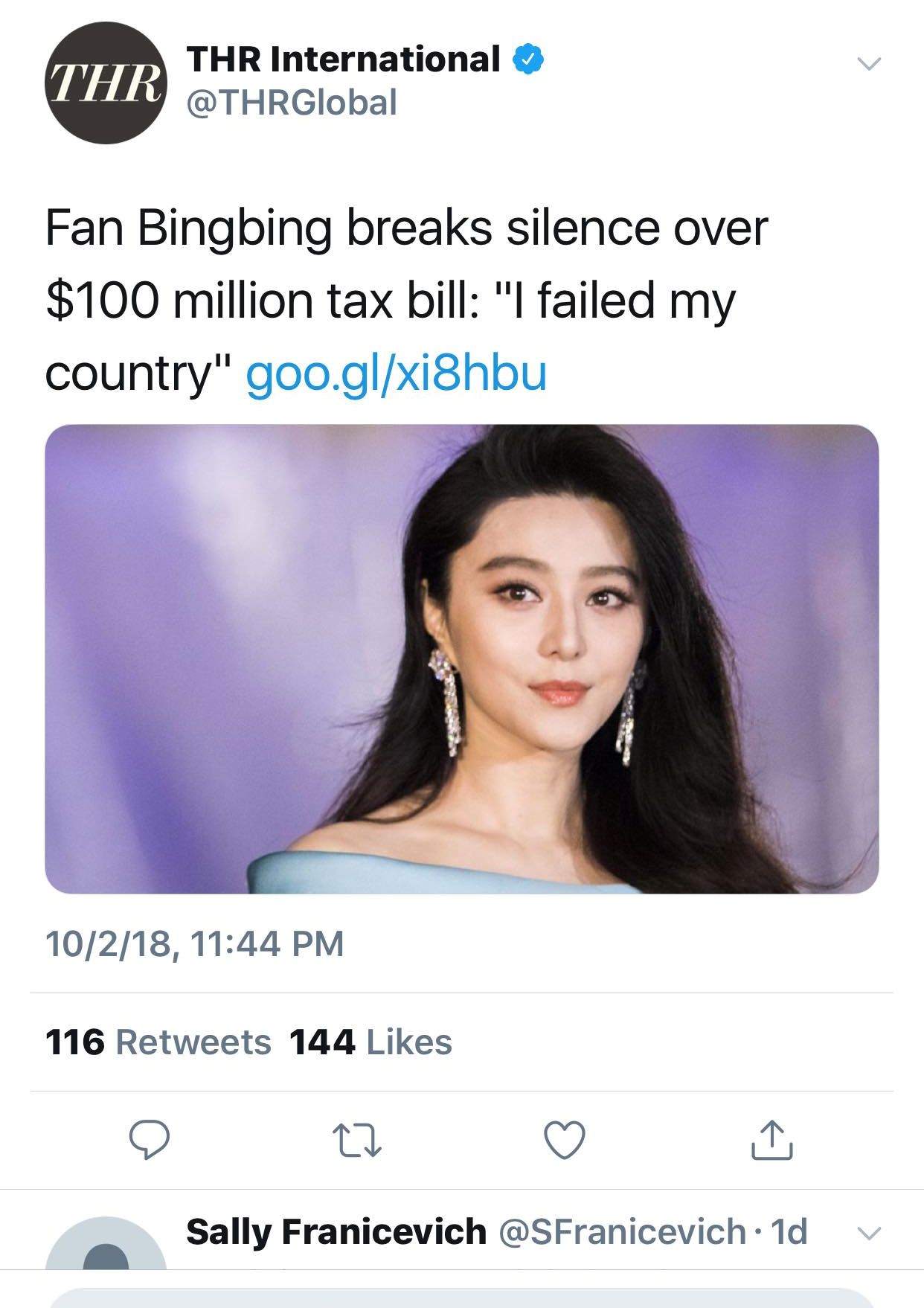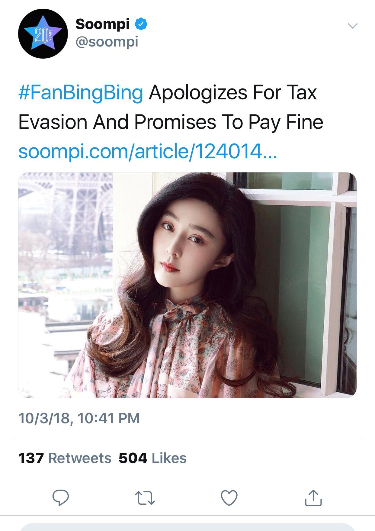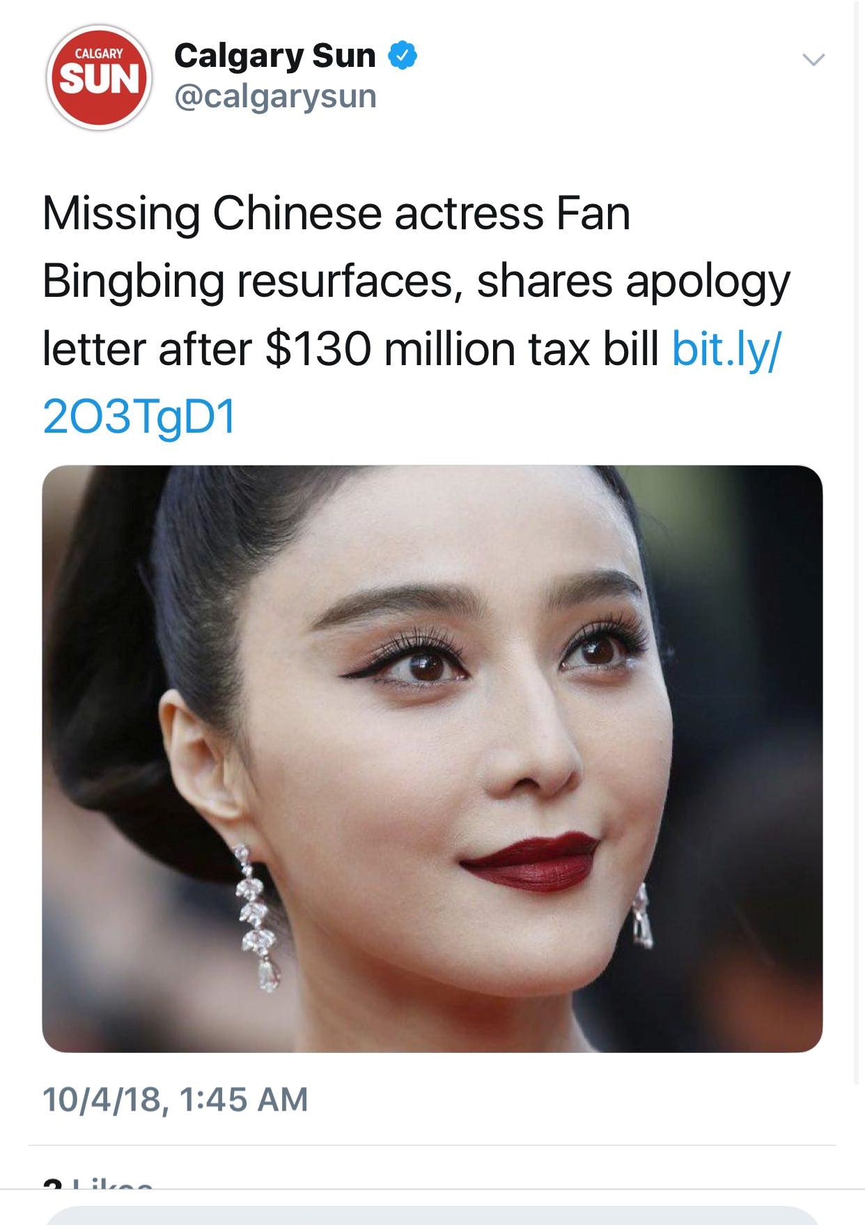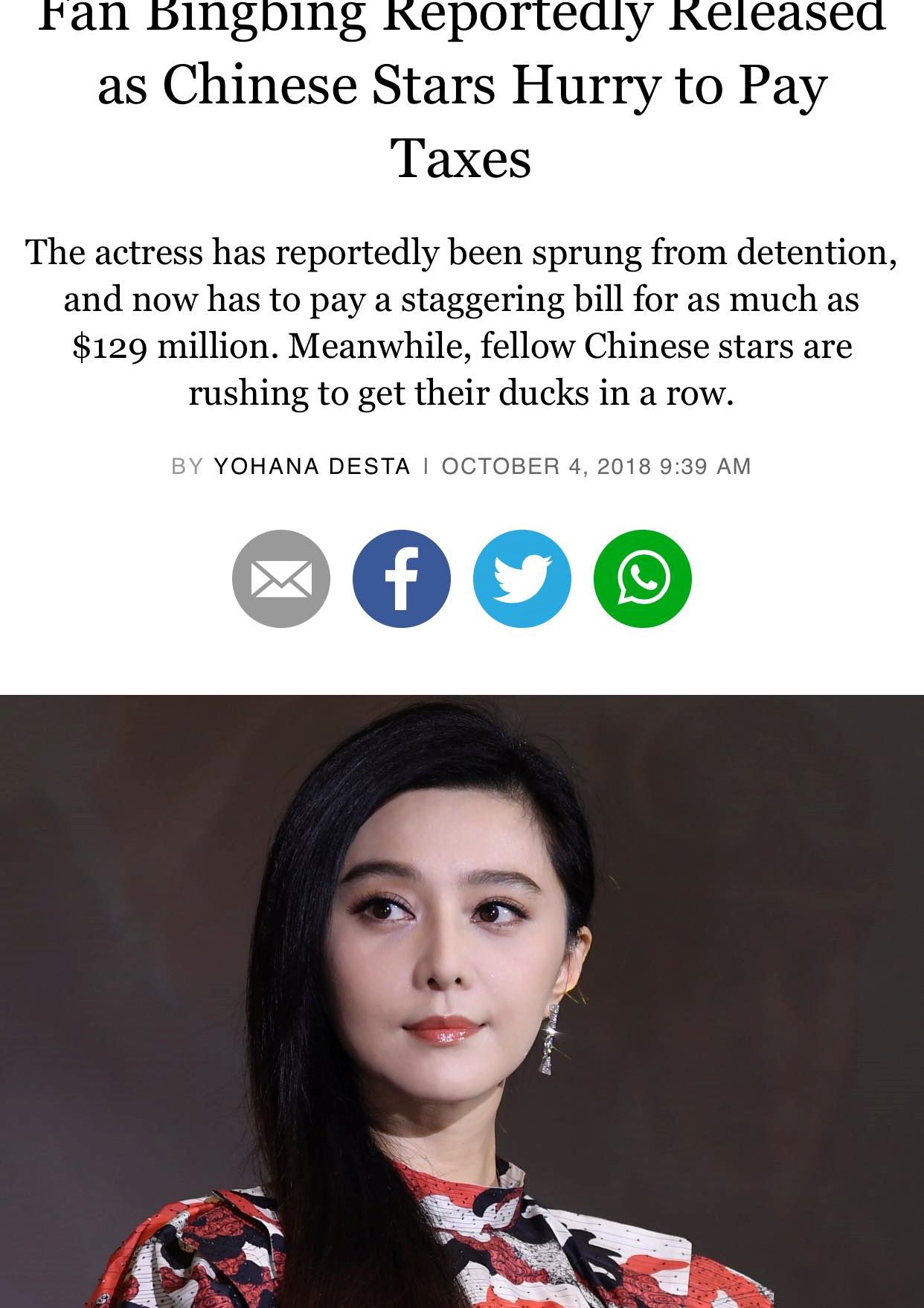 Ngày 03/10, khi CCTV vừa đưa tin thì trên twitter đã nhanh chóng xuất hiện hàng loạt bài báo về việc trốn thuế của Phạm Băng Băng.