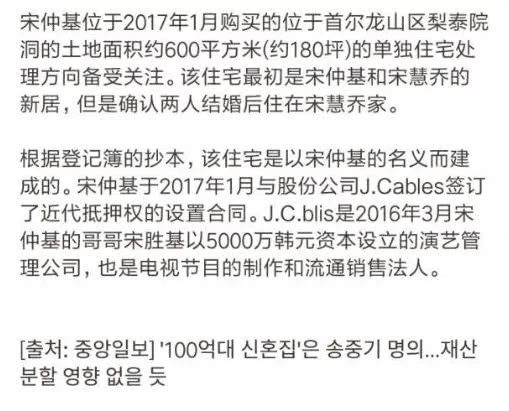 Được biết, lúc hai người kết hôn thì tài sản trước hôn nhân vẫn chưa công chứng, giờ đây tài sản hai người sở hữu chung cao đạt mức 100 tỷ won (tương đương hơn 2 ngàn tỷ đồng). Vì vậy, với những chi tiết này, trang QQ của Trung Quốc tổng kết, đưa ra kết luận có lẽ “Mục đích của Song Joong Ki chính là giành lại được nhiều tài sản hơn cho mình“.