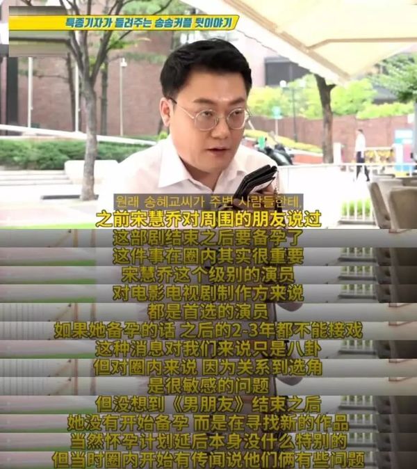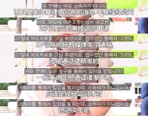 Ngày 30 tháng 6, truyền thông Hàn Quốc đã liên hệ với ký giả lần đầu tiên độc quyền tiết lộ tin ly hôn của Song Joong Ki và Song Hye Kyo, đối phương bày tỏ phía mình biết nguyên nhân Song Joong Ki ly hôn Song Hye Kyo nhưng không thể tiết lộ.