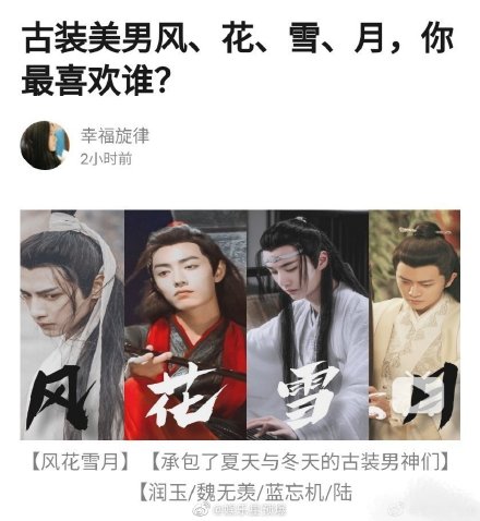 Tứ mỹ nam cổ trang ứng với Phong, Hoa, Tuyết Nguyệt, bạn thích mỹ nam nào nhất trong danh sách bốn mỹ nam trên đây?
