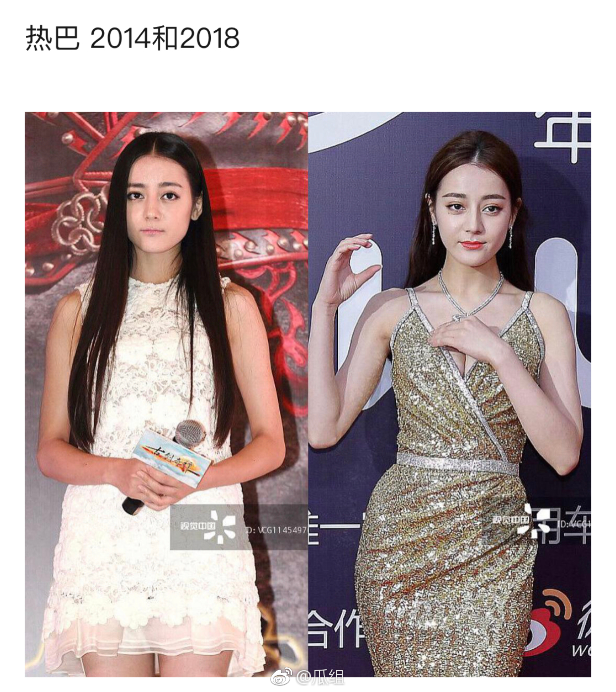 Nhan sắc của Địch Lệ Nhiệt Ba hai năm trở lại đây đang ở thời đỉnh cao. Người đẹp 26 tuổi được tung hô rất nhiều về nhan sắc, nhất là khi cô diện những bộ đồ có phần quyến rũ và makeup đậm hơn. Trở về khoảng thời gian cách đây 4 năm trước, Địch Lệ Nhiệt Ba cũng khá giống với Lưu Thi Thi khi để tóc dài thẳng, chọn những bộ đồ đơn giản và makeup nhạt.