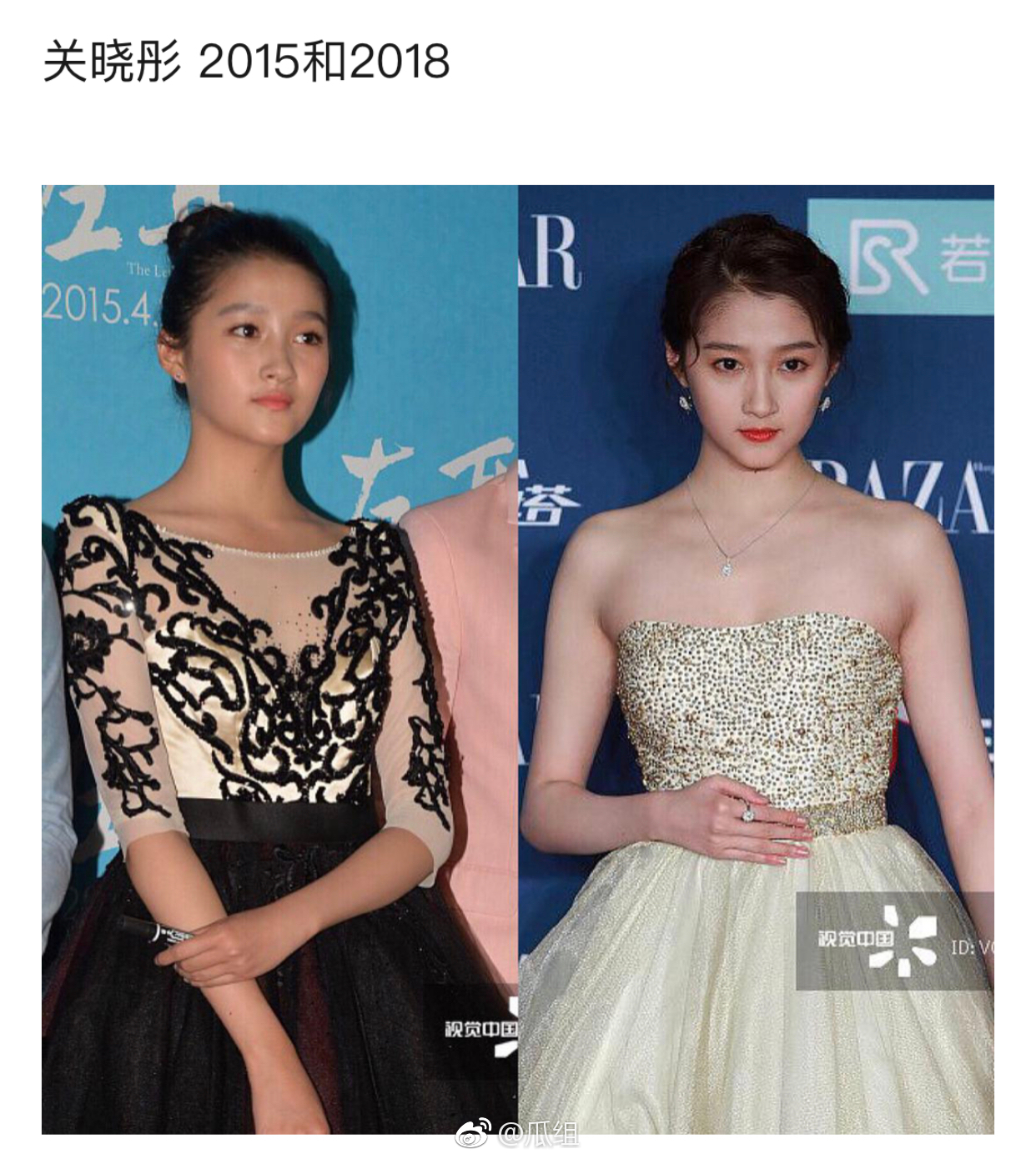 “Bạn gái Lộc Hàm” Quan Hiểu Đồng cũng không có nhiều thay đổi với cách ăn mặc khi xuất hiện. Trong 4 năm qua, người đẹp vẫn luôn trung thành với những bộ váy công chúa bồng bềnh thu hút mỗi khi góp mặt trong các sự kiện. Thay vì chọn kiểu makeup nhạt như trước, giờ stylist của Quan Hiểu Đồng cũng “có tâm” hơn khi để người đẹp makeup trông tươi sáng hơn.