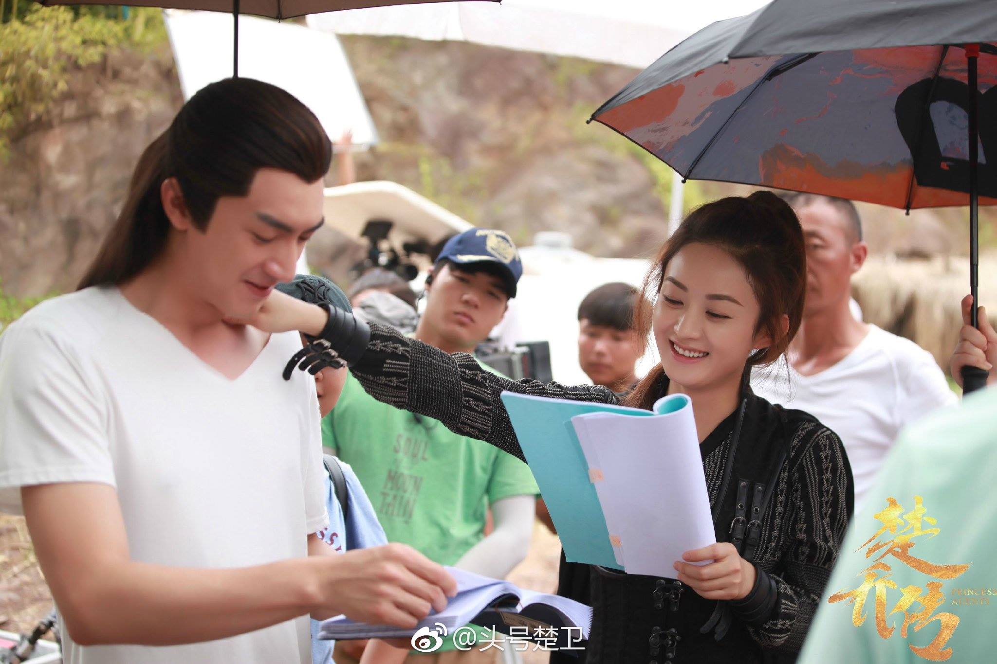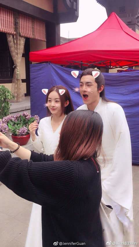 Sở Kiều và Vũ Văn Nguyệt trêu đùa nhau trong đoàn làm phim