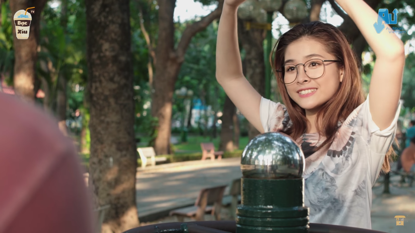 Tạo hình đáng yêu của Minh Tú trong buổi “hẹn hò” đầu tiên tại công viên.