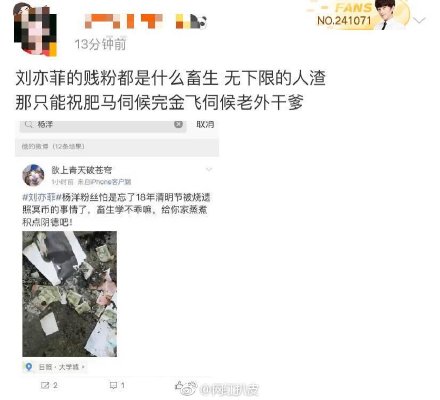 “Fan có rãnh rỗi không gì làm sao? Mông bự của Lưu mập nhà mình xem chưa đủ sao?”, “Fan của Lưu Diệc Phi đều là lũ khốn…”