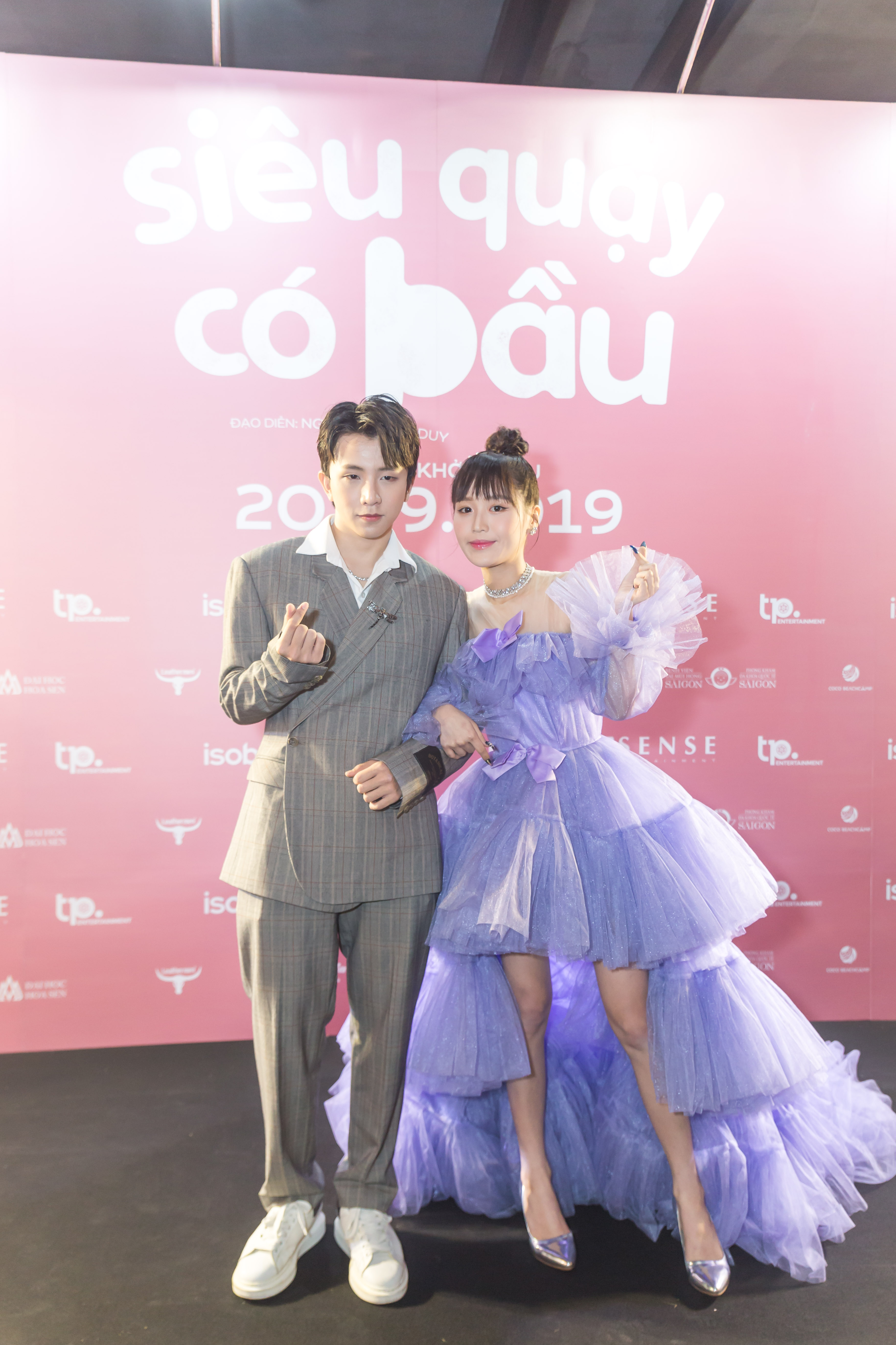 Han Sara cùng Tùng Maru tay trong tay tới tham dự sự kiện họp báo ra mắt phim Siêu quậy có bầu.
