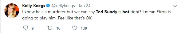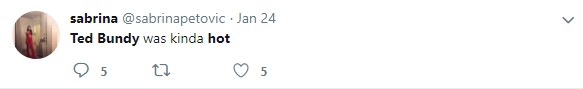 Trong một số phiên tòa xét xử Ted Bundy, không khó để nhận ra nhiều gương mặt phụ nữ trẻ tới dự chỉ để ngắm nhìn tên giết người với đôi mắt ngời sáng ngưỡng mộ. Khi được phỏng vấn, các cô gái này hoàn toàn ý thức được đó là một kẻ sát nhân điên loạn nhưng không giấu nổi sự tò mò và thích thú khi chứng kiến cũng chính kẻ đó đối chất với tòa án và đàng hoàng trả lời phỏng vấn báo chí. Một lực lượng “fangirl” như thế cũng đã hình thành 30 năm sau trên Twitter, với nhiều dòng trạng thái diễn tả sự thích thú trước vẻ đẹp trai nam tính của Ted Bundy, thậm chí dòng chữ “kill me daddy” (hãy giết em đi) còn được phát tán khắp nơi.