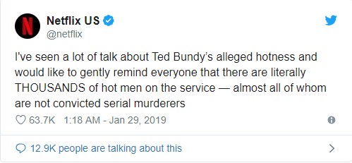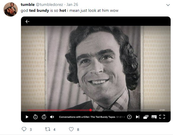 Tròn 30 năm sau ngày kẻ sát nhân hàng loạt khét tiếng của nước Mỹ Ted Bundy bị xử tử, Netflix tung ra bộ phim tài liệu Conversations with a Killer: The Ted Bundy Tapes của đạo diễn Joe Berlinger. Hai ngày sau, bộ phim tiểu sử về Ted Bundy cũng do bàn tay Berlinger đạo diễn mang tên Extremely Wicked, Shockingly Evil, and Vile với sự tham gia của Zac Efron được ra mắt tại liên hoan phim Sundance. Hiệu ứng truyền thông đã khiến sự chú ý của công chúng đổ dồn vào Ted Bundy, khiến tên giết người này lại một lần nữa trở thành cái tên “hot” trên mạng xã hội. Điều này đã gây ra một vài hiệu ứng đáng lo ngại khiến Netflix phải lên tiếng.