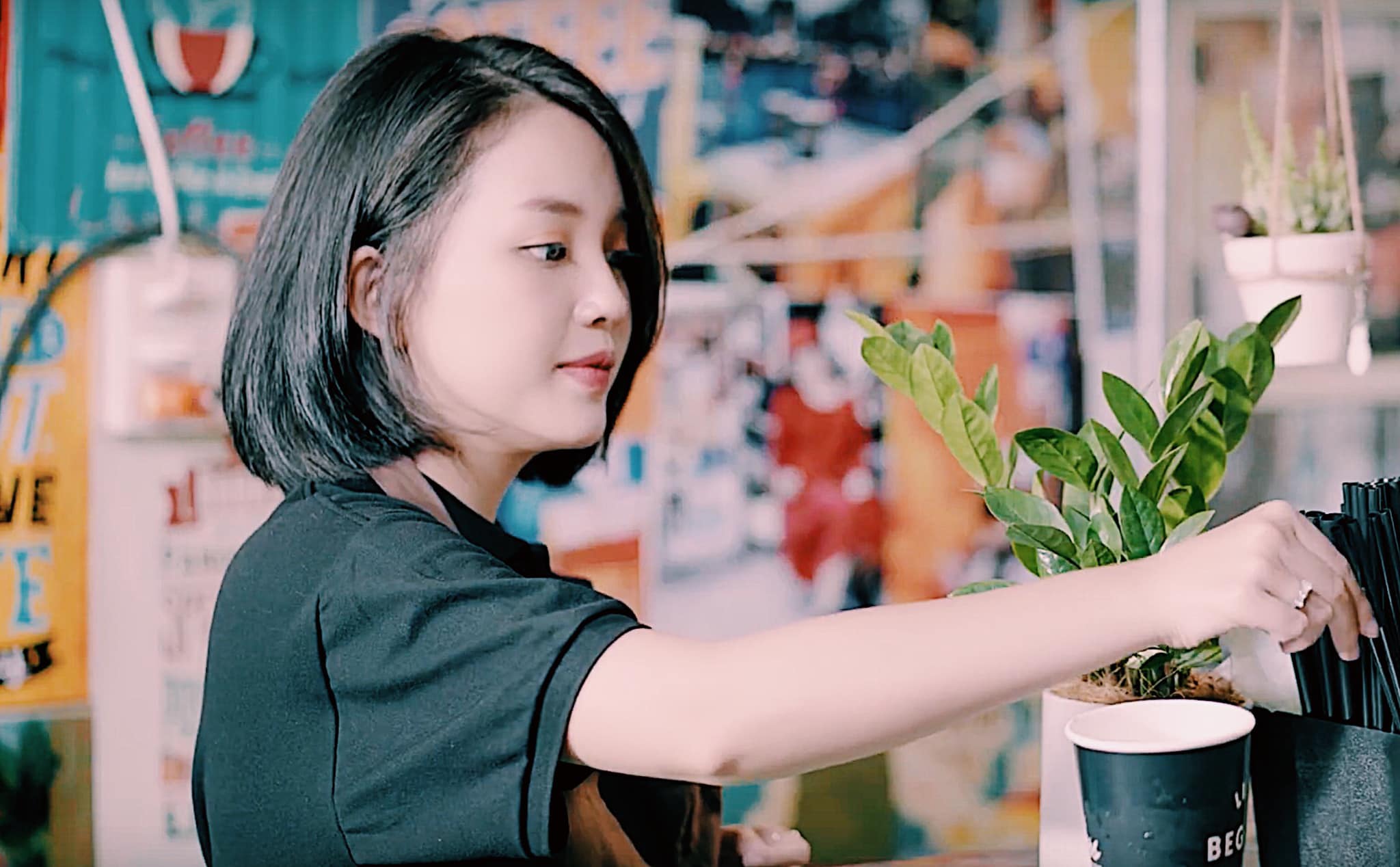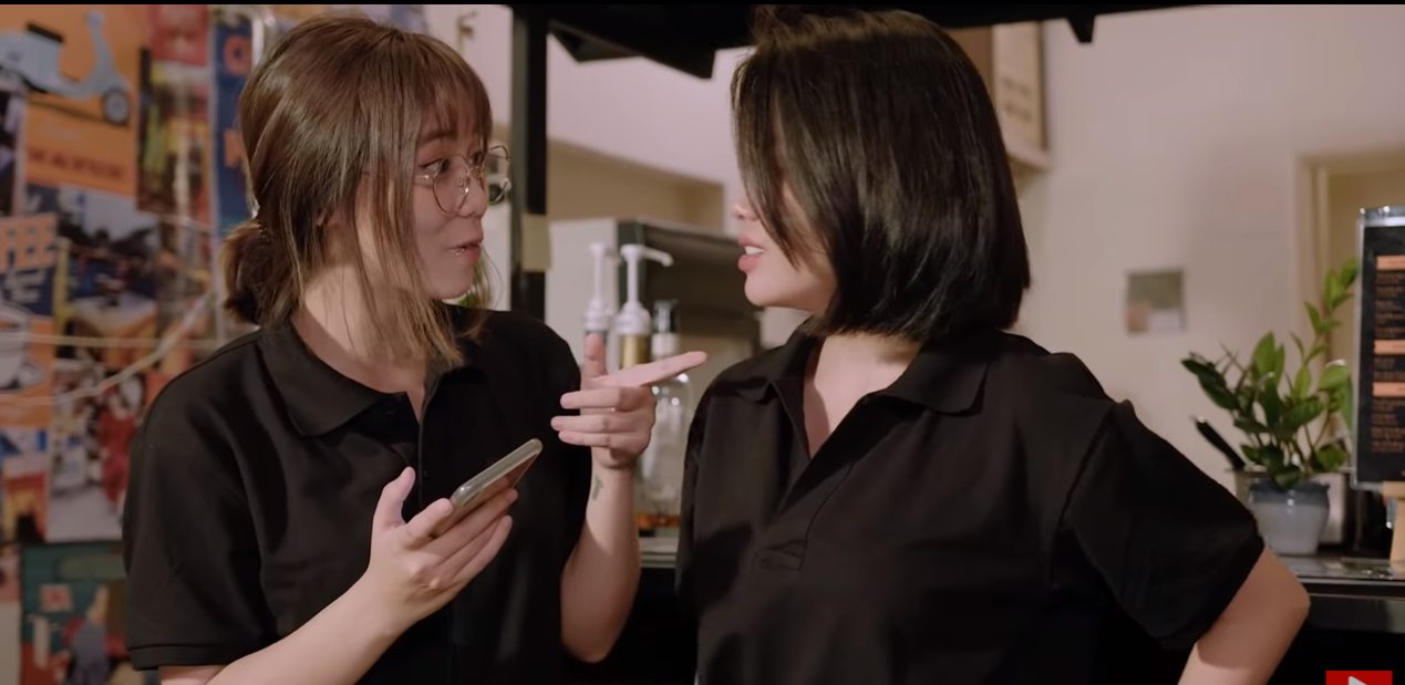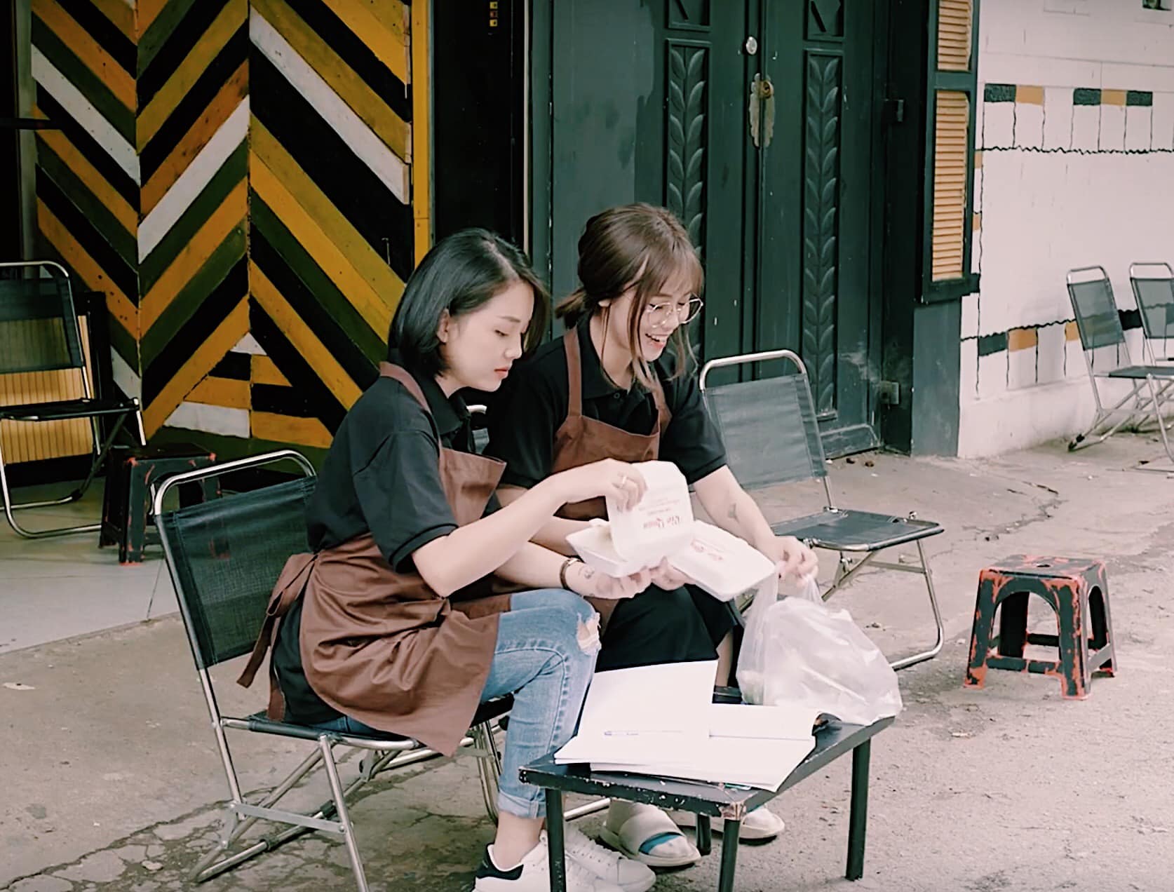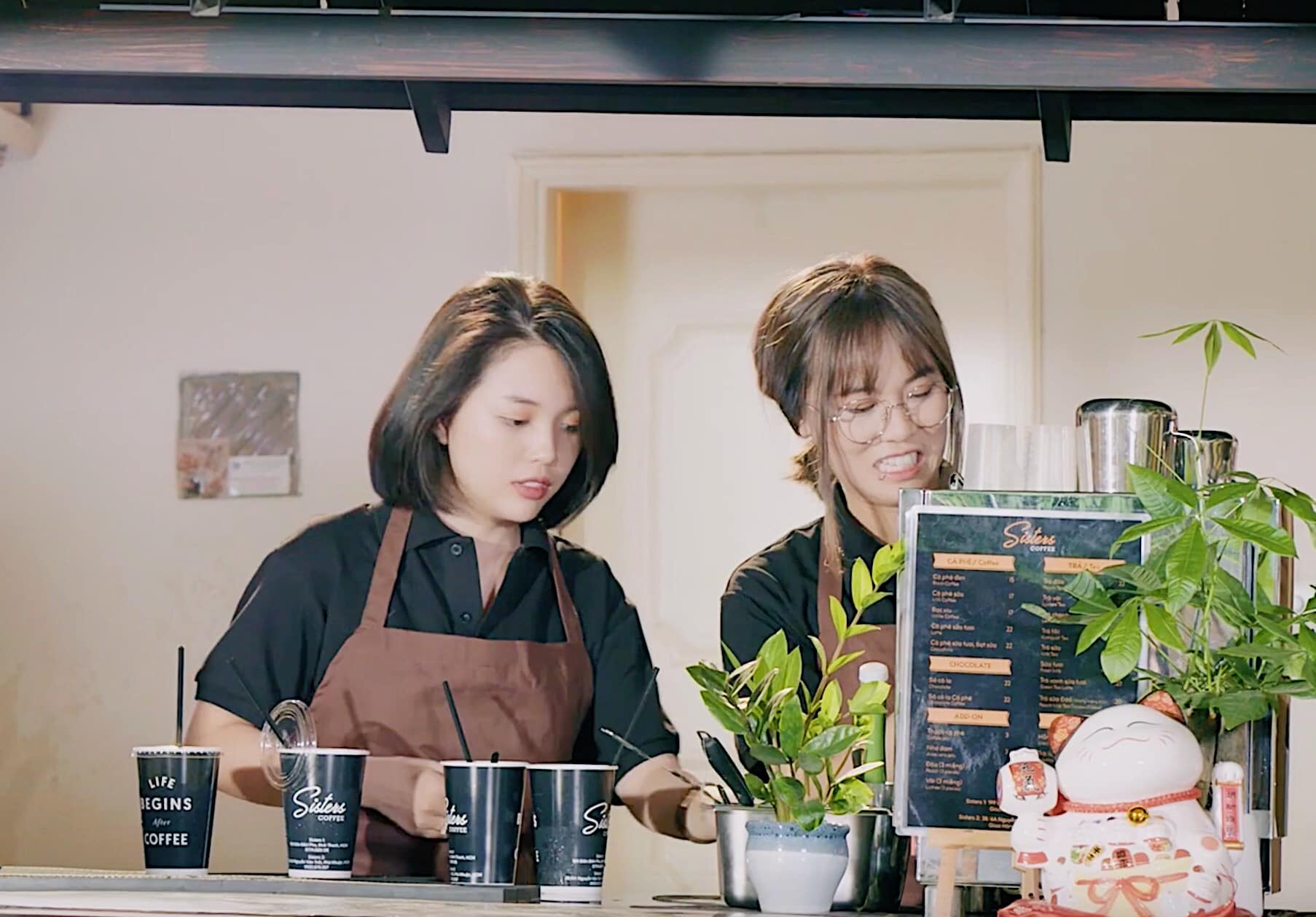 Đôi bạn thân cùng làm việc trong quán cafe.