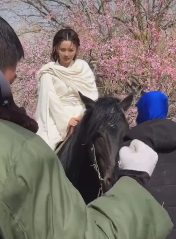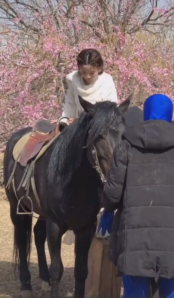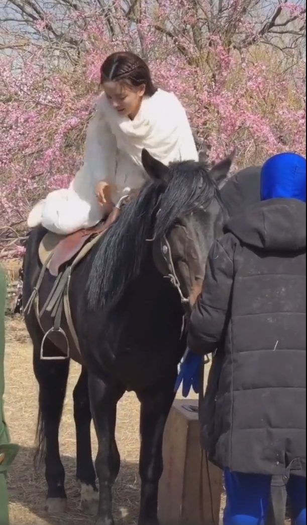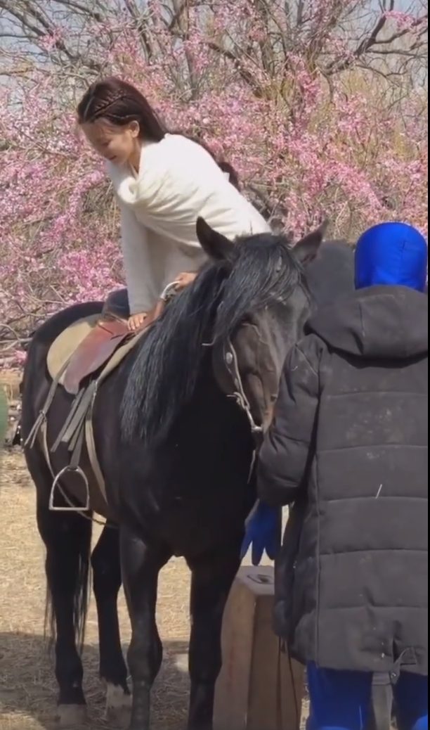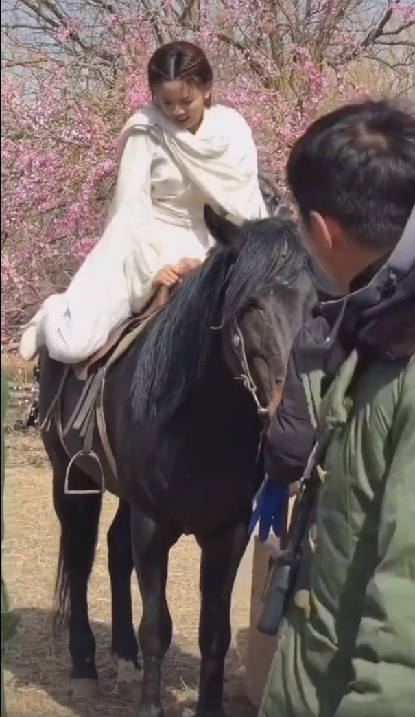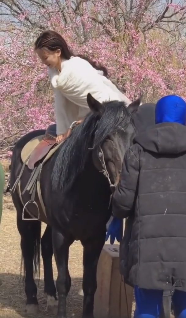 Trong phần ảnh còn lại, Dương Siêu Việt cẩn thận leo lên lưng ngựa, động tác lên ngựa rất chậm và có vẻ cô nàng vẫn còn non tay.