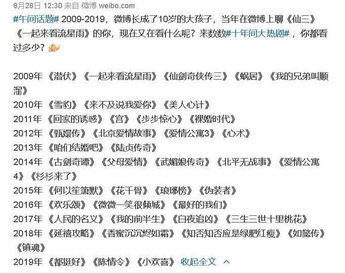 Ngày 28 tháng 8 vừa qua, một cư dân mạng đưa ra danh sách những bộ phim hot nhất trong vòng 10 năm từ năm 2009 đến 2019. Danh sách này ngay lập tức thu hút sự quan tâm bình luận của cộng đồng mạng trên diễn đàn weibo. Phần lớn trong số đó là phim của Dương Mịch, Triệu Lệ Dĩnh đóng chính và hai nữ diễn viên này được đông đảo công chúng gật gù khen ngợi là nữ vương màn ảnh nhỏ.