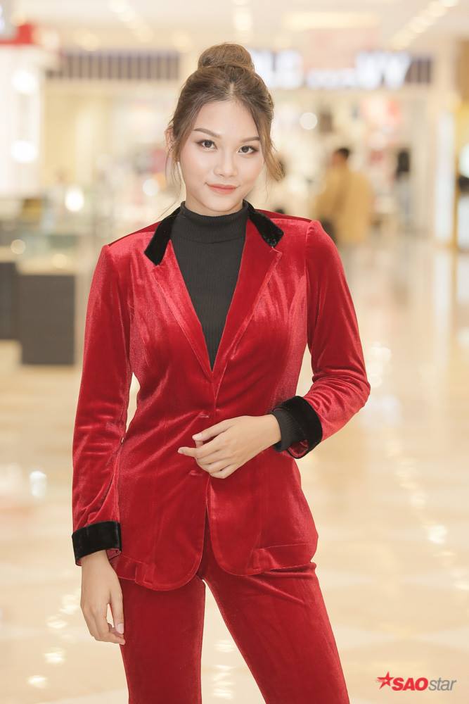 Thanh Tú xinh đẹp trong bộ vest nhung kín đáo.