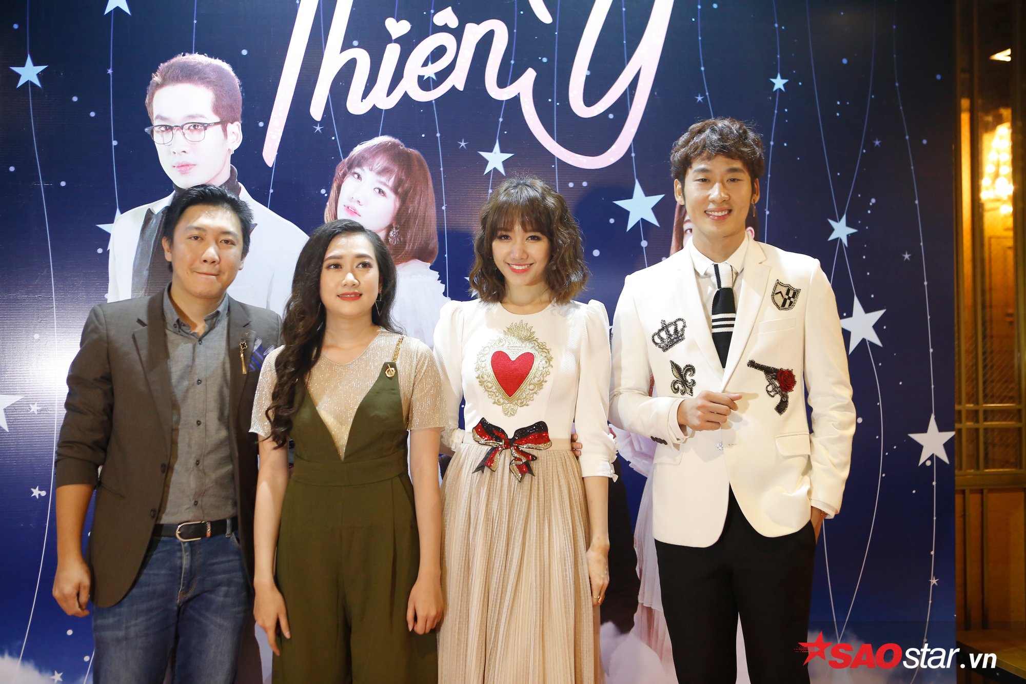 Đạo diễn Huy Trần (góc trái) cùng dàn diễn viên Thiên Ý: Phương Lan, Hari Won, Tuấn Trần.