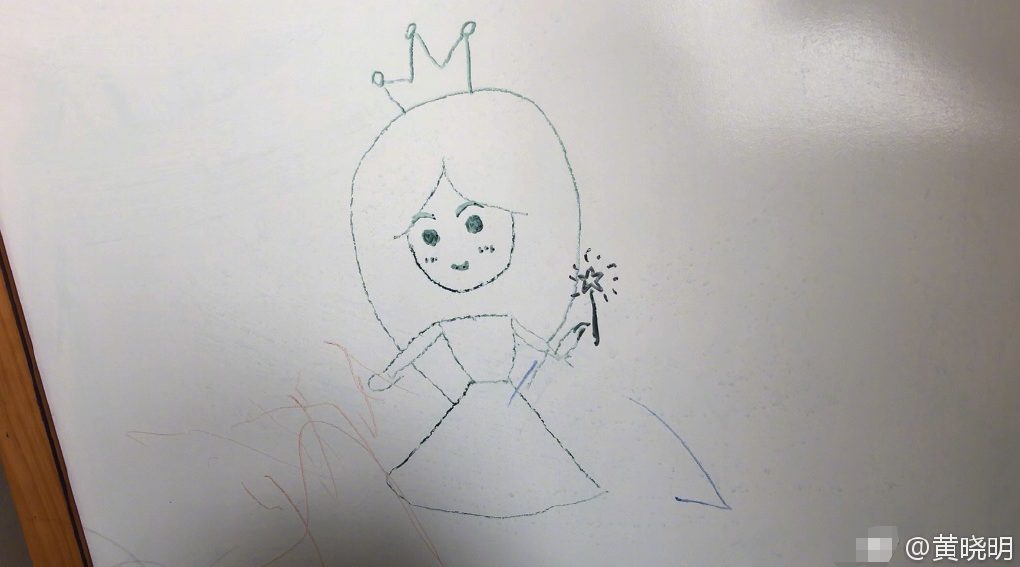 Bức tranh là một nàng công chúa xinh đẹp. Lời nhắn chỉ vỏn vẹn 4 chữ nhưng vô cùng ngọt ngào, ấm lòng, đồng thời xua tan mọi thị phi xoay quanh cuộc sống hôn nhân của hai người.