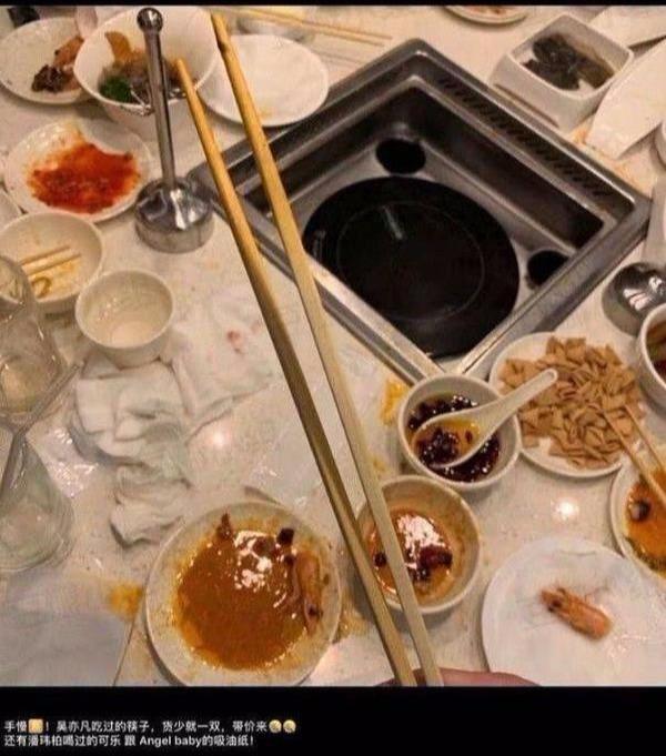 Điều làm người khác cảm thấy bất ngờ hơn nữa đó là vật dụng đã qua sử dụng của Ngô Diệc Phàm. Cách đây không lâu, khi quay chương trình thực tế mới, cả đoàn người gồm Ngô Diệc Phàm, Angelababy, Phan Vĩ Bách, Triệu Kim Mạch,… cùng đi nhà hàng ăn lẩu, dùng xong bữa tối họ đã rời đi ngay.