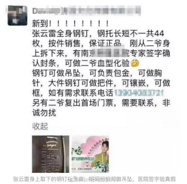 Sau hơn một tháng nghỉ dưỡng, Trương Vân Lôi xuất viện vào tháng 3. Tuy nhiên mới sáng vừa xuất viện thì tiếp sau đó đã có cư dân mạng phát hiện ra có người bán những miếng thép và định vít tháo ra từ người sao nam này và còn đảm bảo rằng có chữ ký xác nhận của chuyên gia.