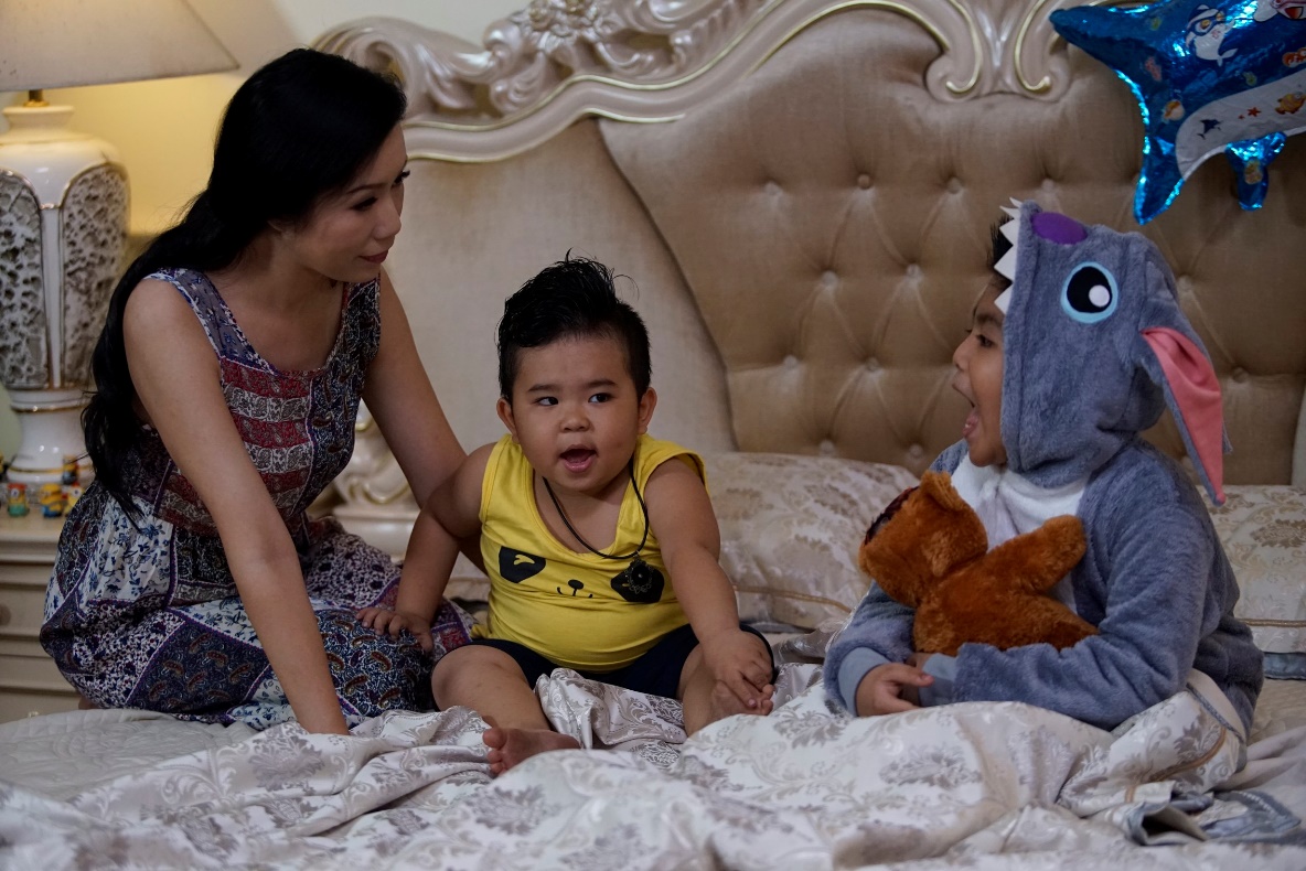 Ngoài đời, nữ nghệ sĩ cũng là bà mẹ hai con, nhưng là hai cô công chúa. Nhờ kinh nghiệm nuôi dạy trẻ nhỏ đó mà cô và hai con trai trên màn ảnh đã phối hợp rất ăn ý. Duy Anh và Ku Tin cũng rất biết nghe lời người mẹ xinh đẹp này.