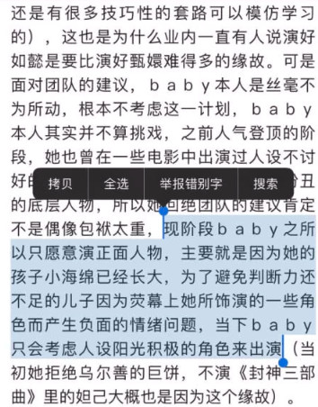 Về ý kiến này, rất nhiều fan hâm mộ của nữ diễn viên tỏ ý không phục, họ cho rằng thần tượng chưa gặp được kịch bản hay, chưa gặp vai diễn tốt nên mới không thể hiện diễn xuất, đồng thời đem hình ảnh Angelababy hợp tác cùng Vương Tổ Lam trong bộ phim Ái tử đa tình (矮仔多情) năm 2008 làm minh chứng.
