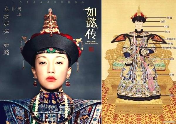 Đến với Hậu cung Như Ý truyện, nếu quan sát tỷ mỹ sẽ phát hiện rất nhiều bộ trang phục cũng được thiết kế rất kỳ công. Giống như trang sức khăn quàng cổ hình bươm bướm của Châu Tấn, trang phục này được mô phỏng giống y đúc với Thuần Huệ hoàng quý phi năm xưa, trong đó mức đấu giá cho bộ trang phục lịch sử này lên đến hơn 137 triệu NDT (458 tỷ đồng).
