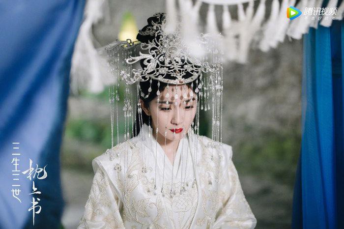 Trong Hương mật tựa khói sương với phân cảnh cưới giữa Cẩm Mịch (Dương Tử) và Nhuận Ngọc (La Vân Hi), trang phục cưới của “cô dâu, chú rể” đều là màu trắng, ngay cả chiếc mũ cùng trang sức của nữ chính cũng trắng nốt. Bên cạnh đó, ở những phân cảnh ngắn ngủi khác trong Tam sinh tam thế: Thập lý đào hoa lẫn Hương mật tựa khói sương, có lúc khi thành hôn, nữ chính lại mặc áo đỏ.