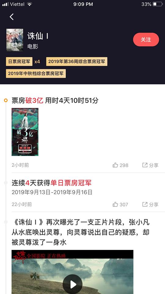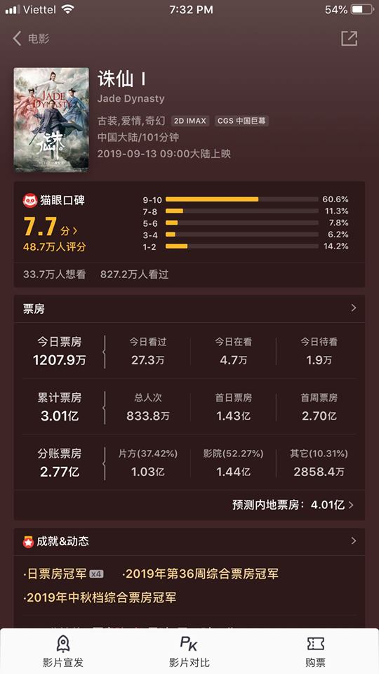 Chính vì vậy, chỉ sau 5 ngày đầu, Tru Tiên 1 cán mốc 300 triệu NDT - một con số rất đáng khích lệ cho một phim điện ảnh gồm toàn dàn diễn viên sau năm 1990 mà chưa ai có thể gọi là “bảo chứng phòng vé”.