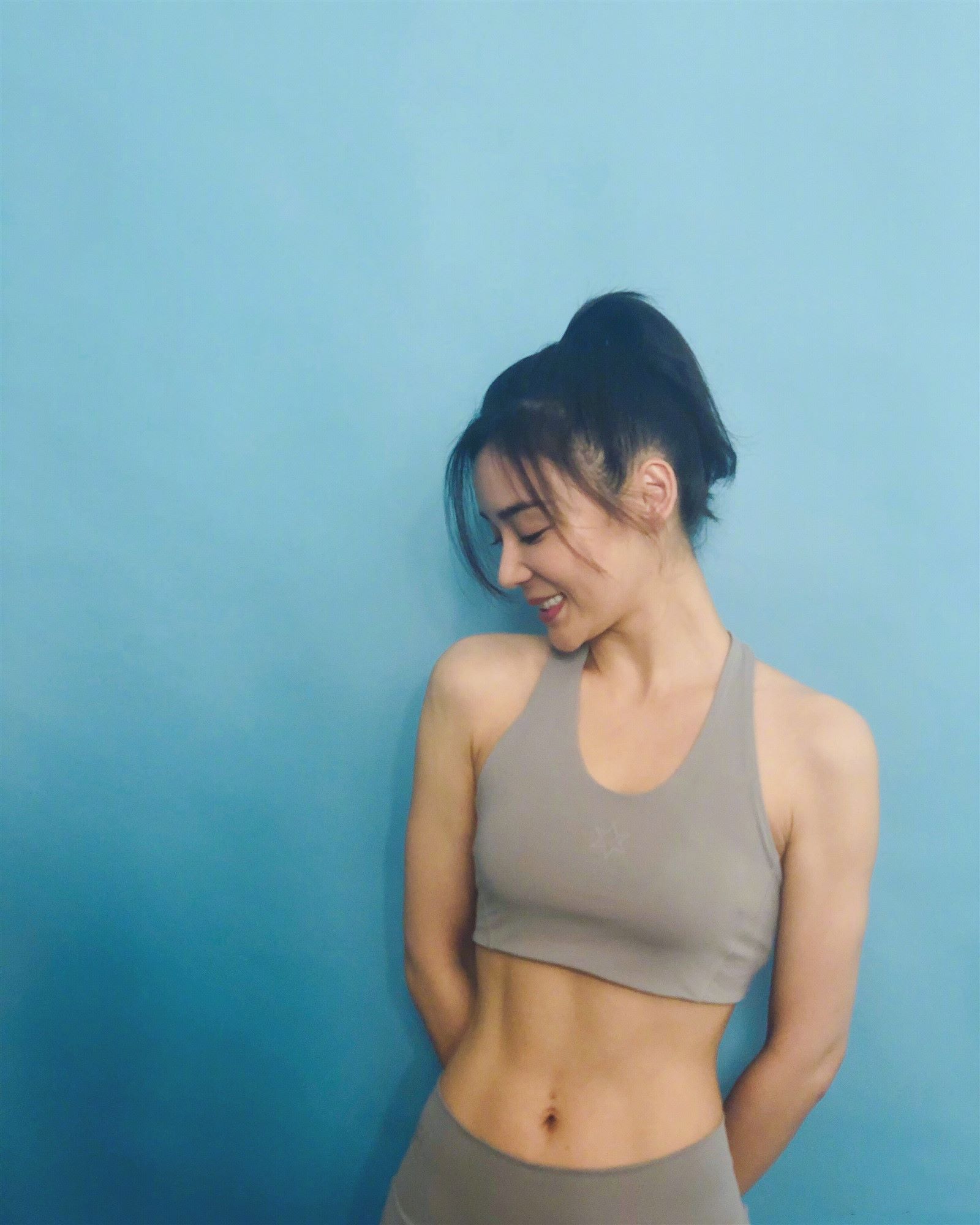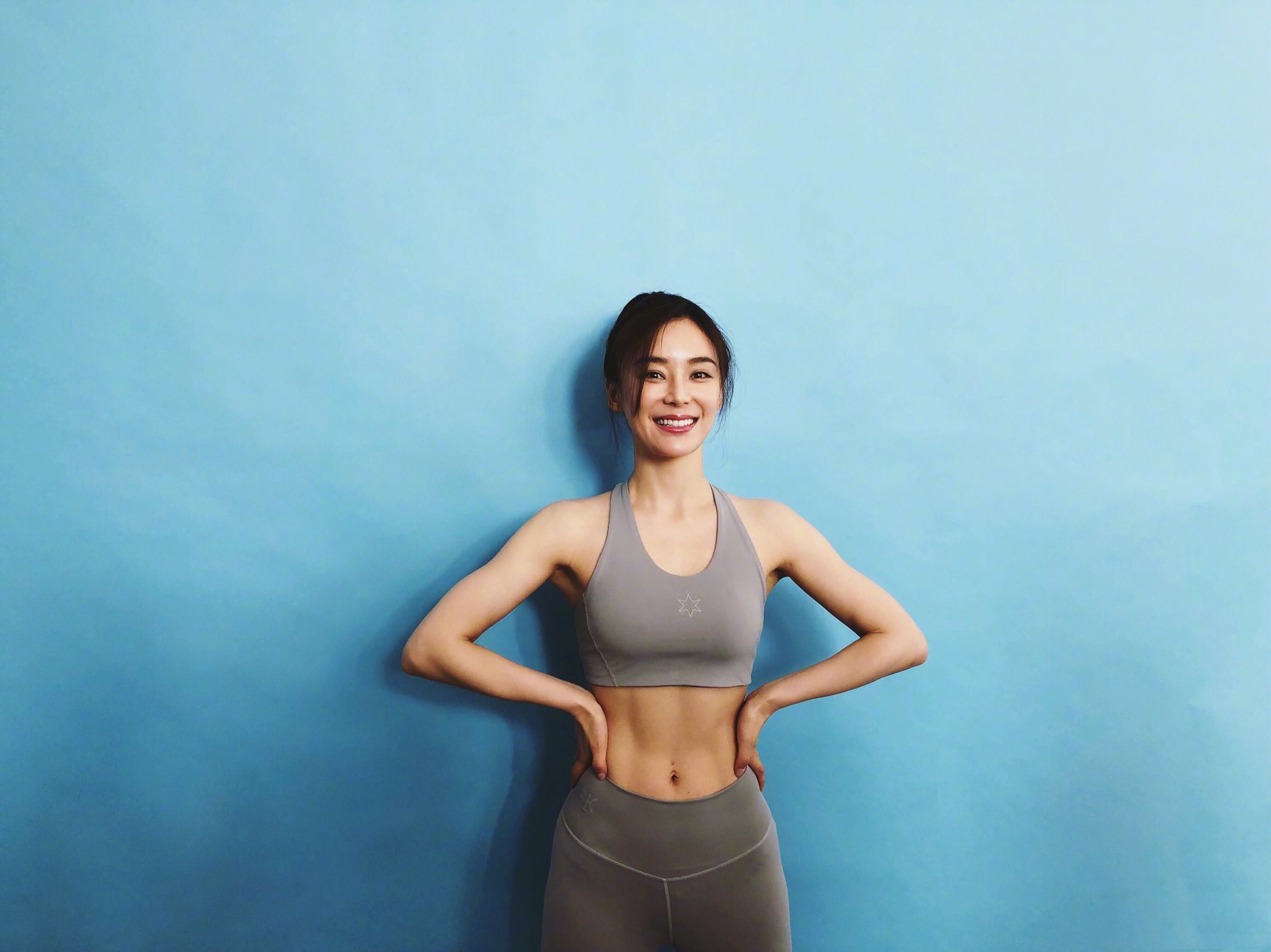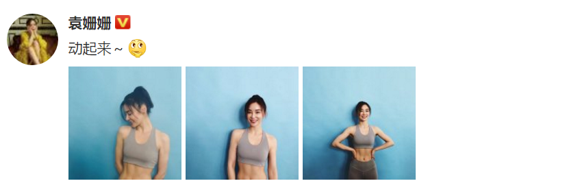 Trong ảnh Viên San San mặc áo thể thao ôm người, tóc dài được bới lên gọn gàng đã thể hiện được nét đẹp khỏe khoắn của cô. Viên San San đối diện với ống kính, nụ cười rạng rỡ, cơ bụng đều hiện rõ càng thêm bắt mắt, cảm giác nữ thần lại càng xinh đẹp hơn rất nhiều.