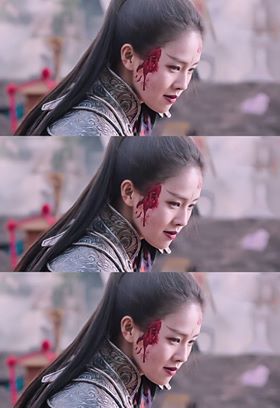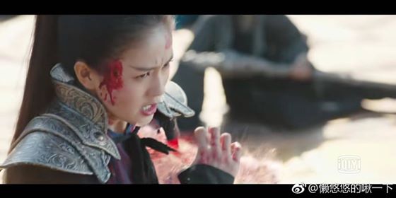 Đến khi gặp kẻ thù giết ông ngoại là Lạc Minh Hiên, biểu cảm khuôn mặt của Lộ Chiêu Diêu đúng chất lạnh lùng, căm thù. Từng đường kiếm rút ra, ánh mắt theo mũi kiếm cũng sắc lạnh vô cùng khiến khán giả có thể cảm nhận được những uất hận, khinh miệt và ghét bỏ mà nhân vật Lộ Chiêu Diêu dành cho Lạc Minh Hiên và Liễu Tô Nhược.