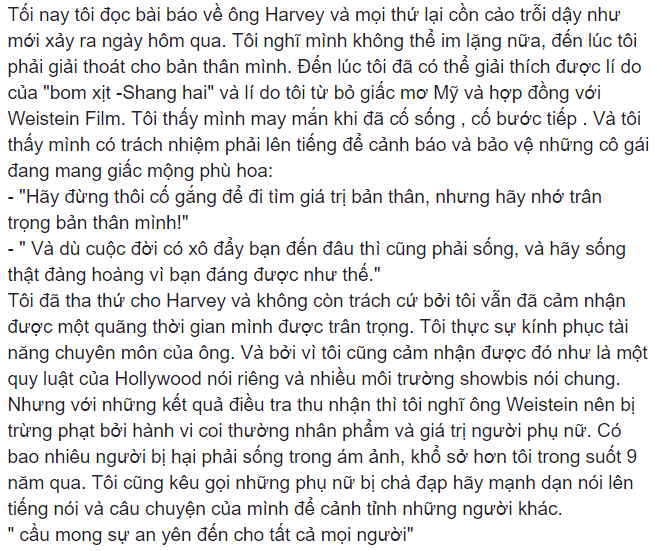 Cô mở đầu câu chuyện về mình và “Shanghai”, Weinstein năm xưa.