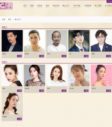 Công ty hữu hạn chế tác điện ảnh Đường Nhân (gọi tắt là Điện ảnh Đường Nhân) được thành lập vào năm 1998, tổng bộ được đặt ở Thượng Hải. Nghiệp vụ của công ty bao gồm đầu tư vào ngành điện ảnh, truyền hình, chế tác, phát hành phim ảnh, quản lý diễn viên… Trước đây, có rất nhiều minh tinh nổi tiếng trực thuộc công ty này như Hồ Ca, Viên Hoằng, Lưu Thi Thi, Lý Á Bằng…